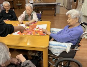 ちぎり絵の制作には手のリハビリ運動や視覚を刺激する効果があります。