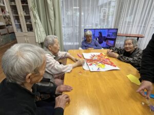 最後に季節にあった栗と柿のおやつを食べながらYouTubeで紅葉の名所の動画を見ていただくと
